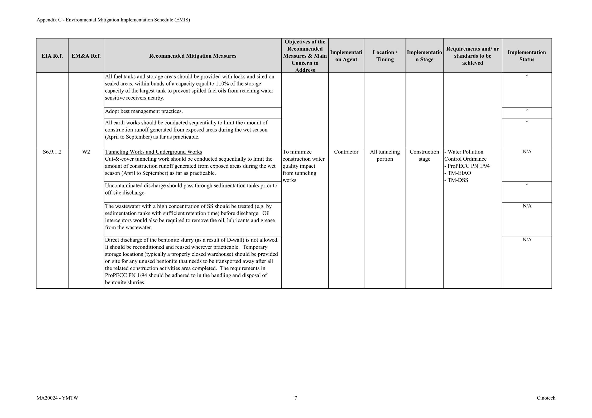 F.     Environmental Mitigation Implementation Schedule (EMIS)