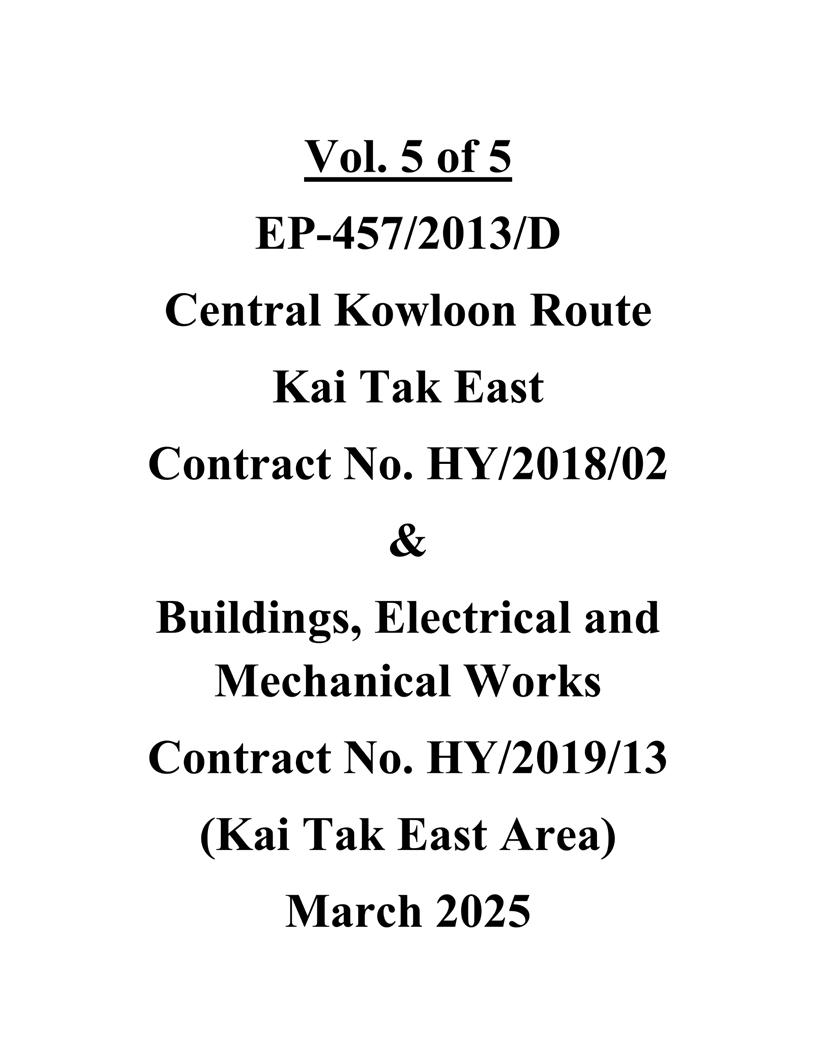 1.2 The Central Kowloon Route – Design and Construction Environmental Impact Assessment Report (Register No.: AEIAR-171/2013) was approved with conditions by the Environmental Protection Department (EPD) on 11 July 2013. An Environmental Permit (EP 457/2013) was issued on 9 August 2013. Variations of EP (VEP) was subsequently applied for and the latest EP (EP-457/2013/D) was issued by EPD on 15 June 2021.