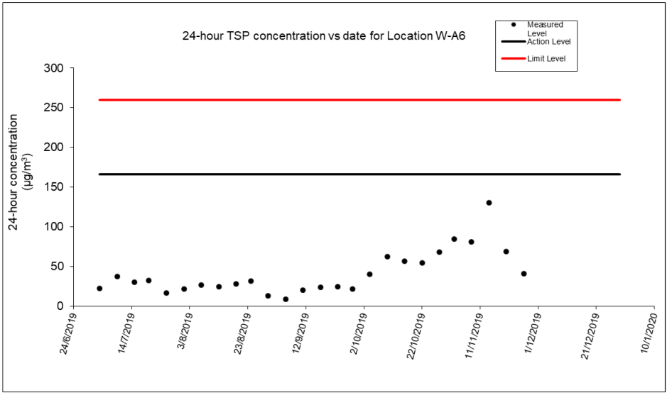 A.12 No exceedance of the Action and Limit Levels of 24-hour TSP and 1-hour TSP monitoring were recorded during the reporting period.