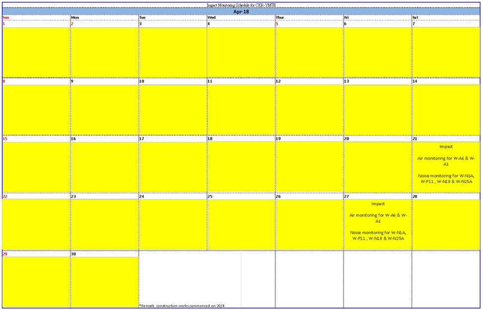 A.6 Bi-weekly inspection of the implementation of landscape and visual mitigation measures was conducted on 12 and 26 April 2018. Details of the audit findings and implementation status are presented in Section 6.