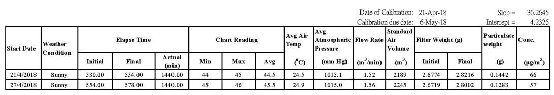 A.10 No exceedance of the Action and Limit Levels of 24-hour TSP and 1-hour TSP monitoring were recorded during the reporting period.