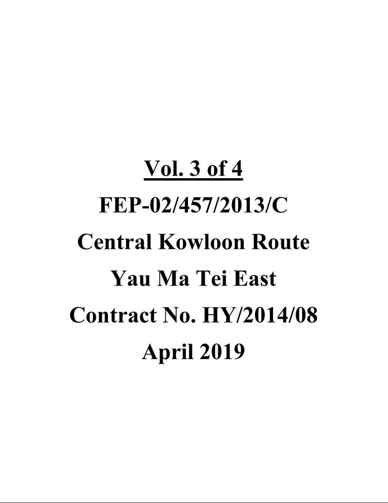 1.2. The Central Kowloon Route – Design and Construction Environmental Impact Assessment Report (Register No.: AEIAR-171/2013) was approved with conditions by the Environmental Protection Department (EPD) on 11 July 2013. An Environmental Permit (EP 457/2013) was issued on 9 August 2013. Variations of EP (VEP) was subsequently applied for and the latest EP (EP-457/2013/C) was issued by EPD on 16 January 2017. A Further EP (FEP-02/457/2013/C) was issued by EPD on 5 March 2018.