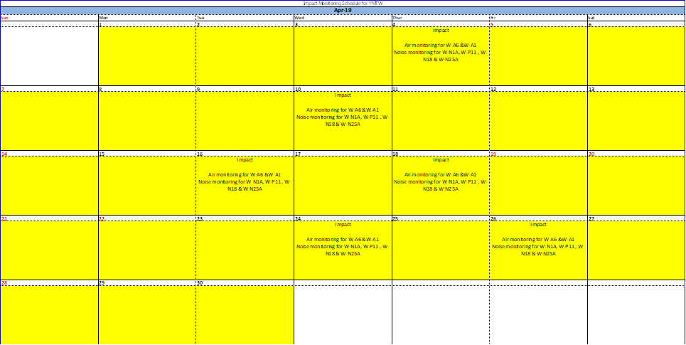 A.7 Joint weekly site inspections were conducted by representatives of the Contractor, Engineer and Contractor’s ET on 4, 11, 18, 25 April 2019. Details of the audit findings and implementation status are presented in Section 5.