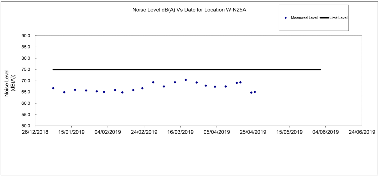Figure 3: Graphical Illustration of Measured Noise Levels at W-N25A
