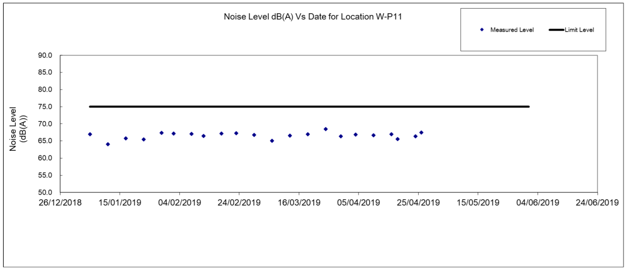 Figure 4: Graphical Illustration of Measured Noise Levels at W-P11