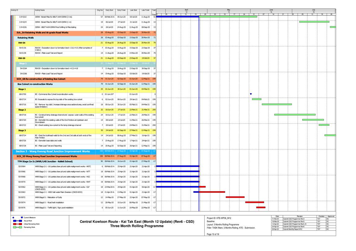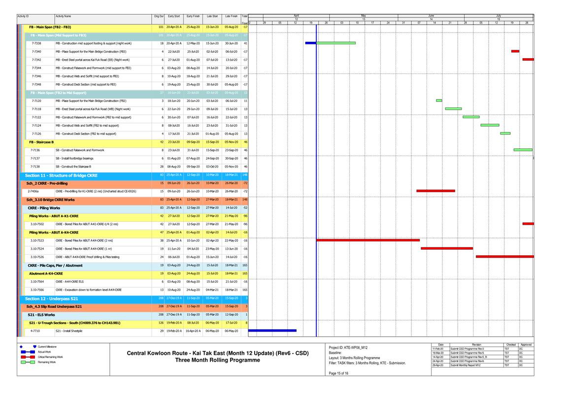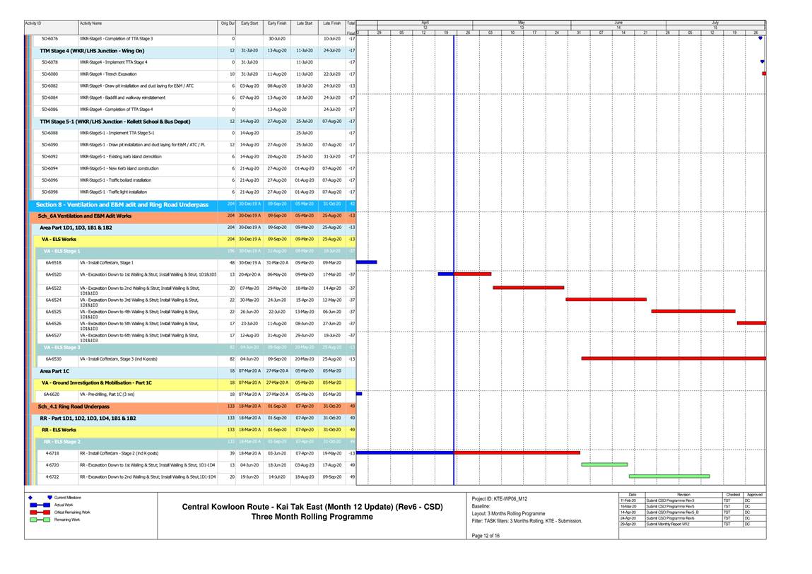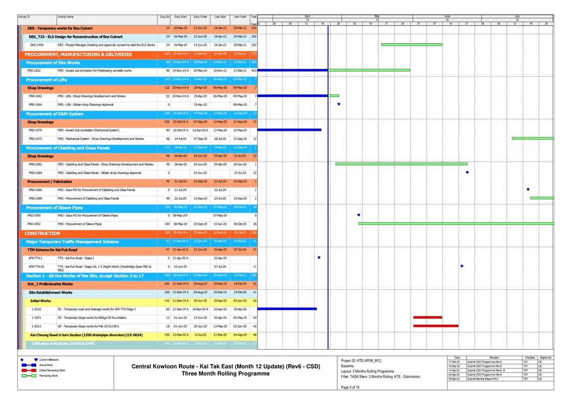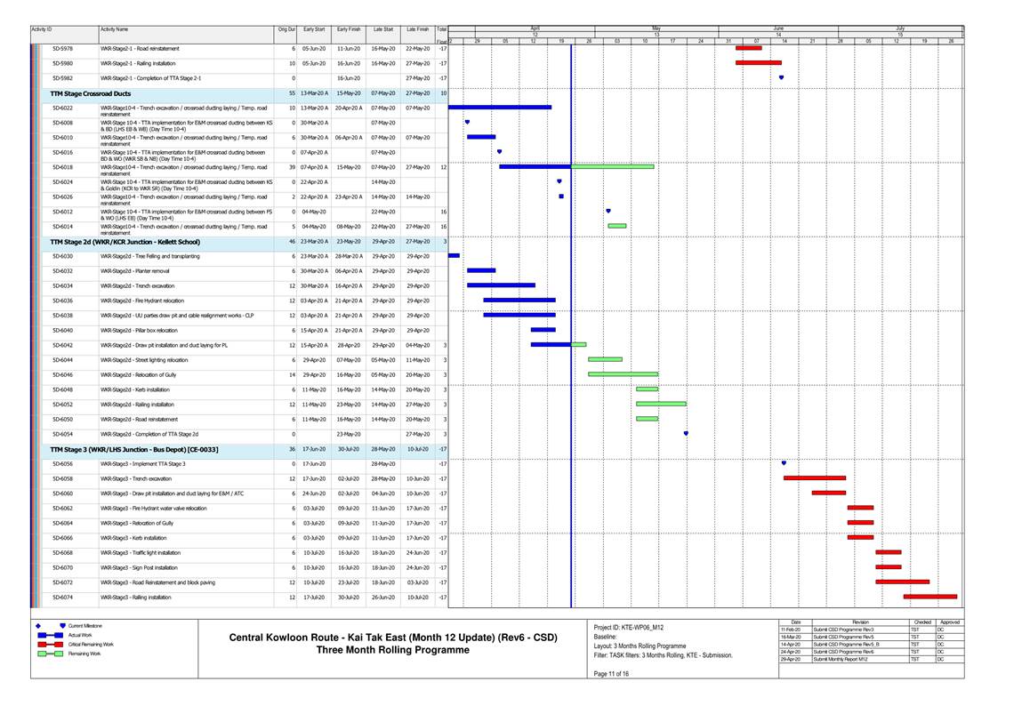1.4. A summary of major construction activities provided by the Contractor in this reporting period is shown in Table 1.1. The construction programme is presented in Appendix B.