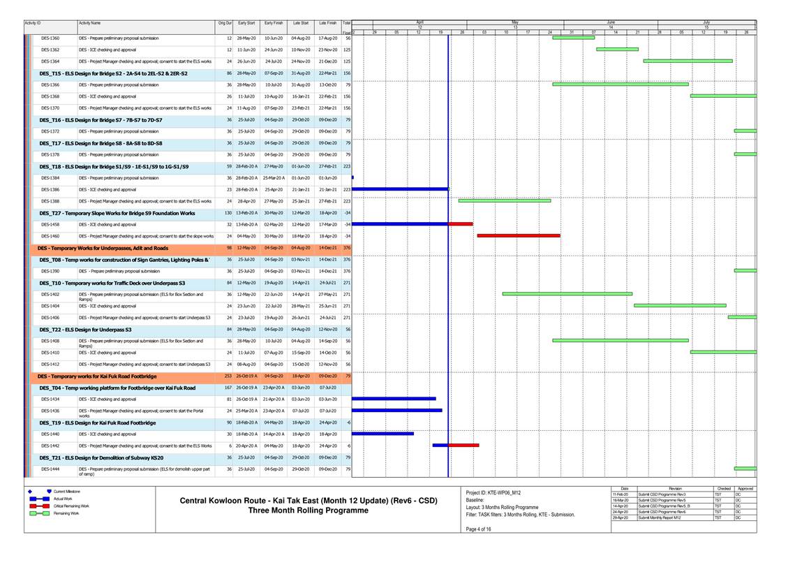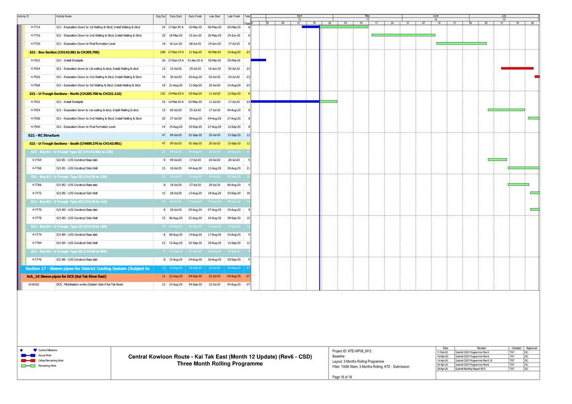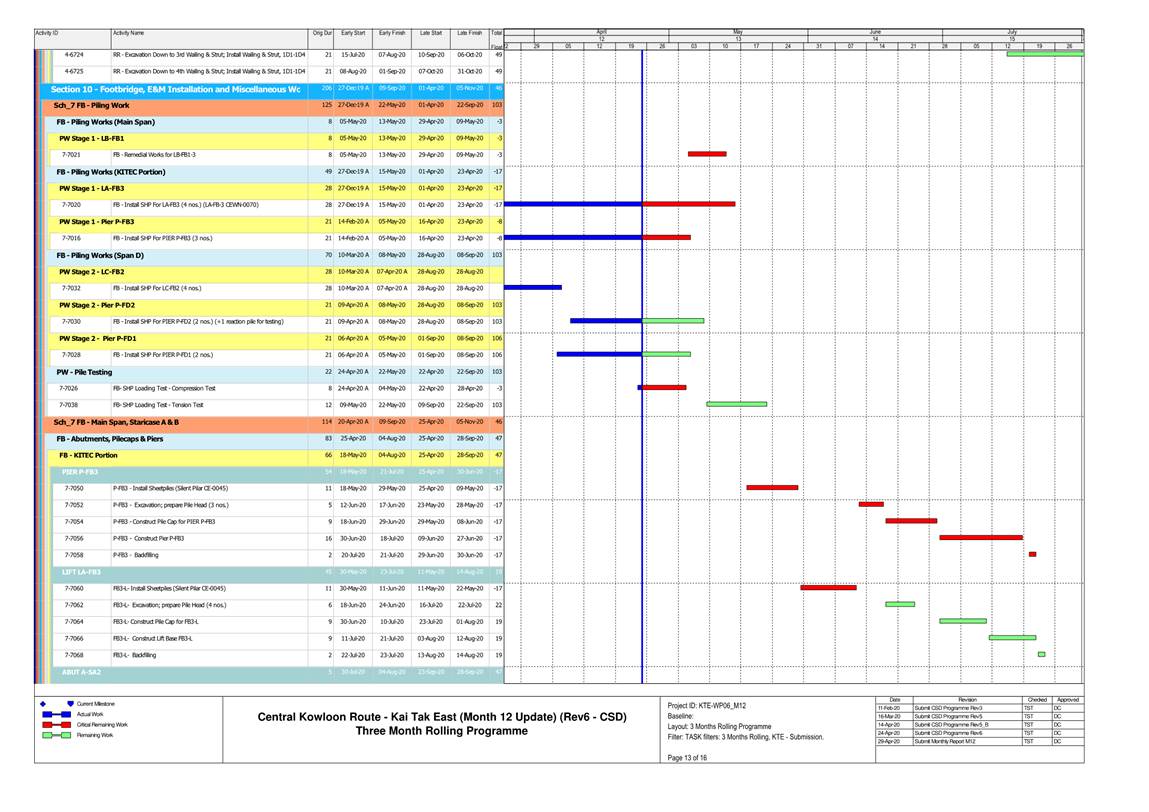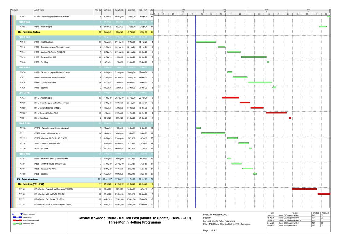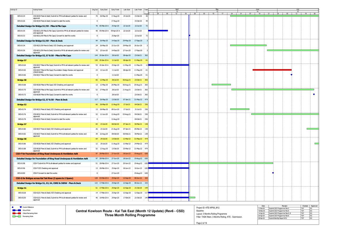 1.4. A summary of major construction activities provided by the Contractor in this reporting period is shown in Table 1.1. The construction programme is presented in Appendix B.
