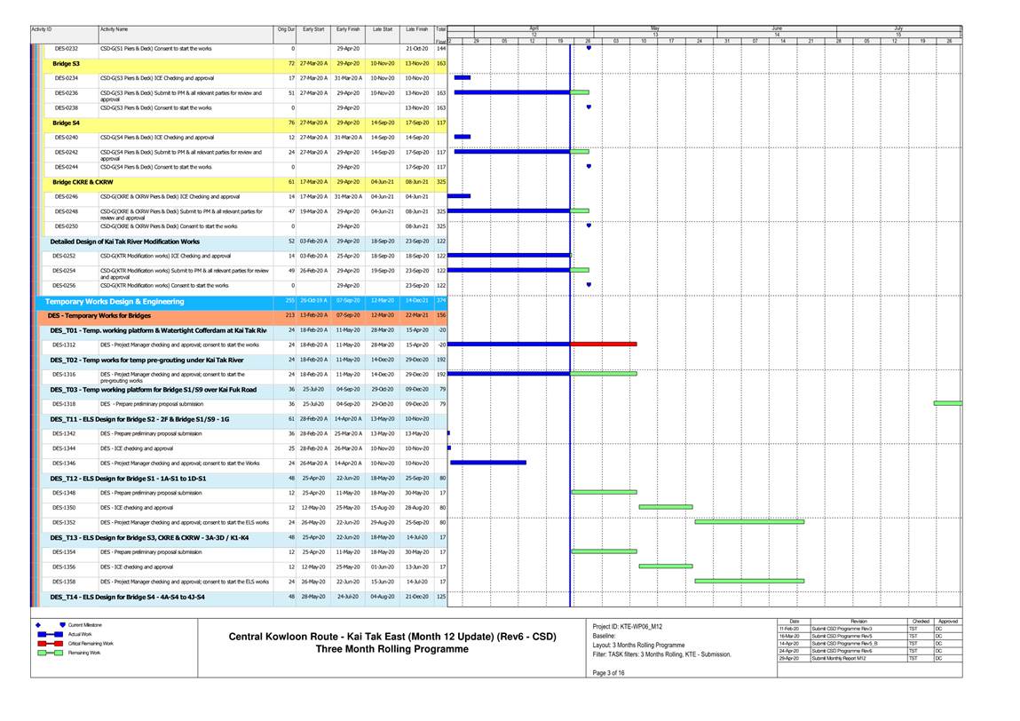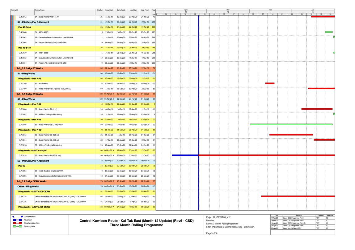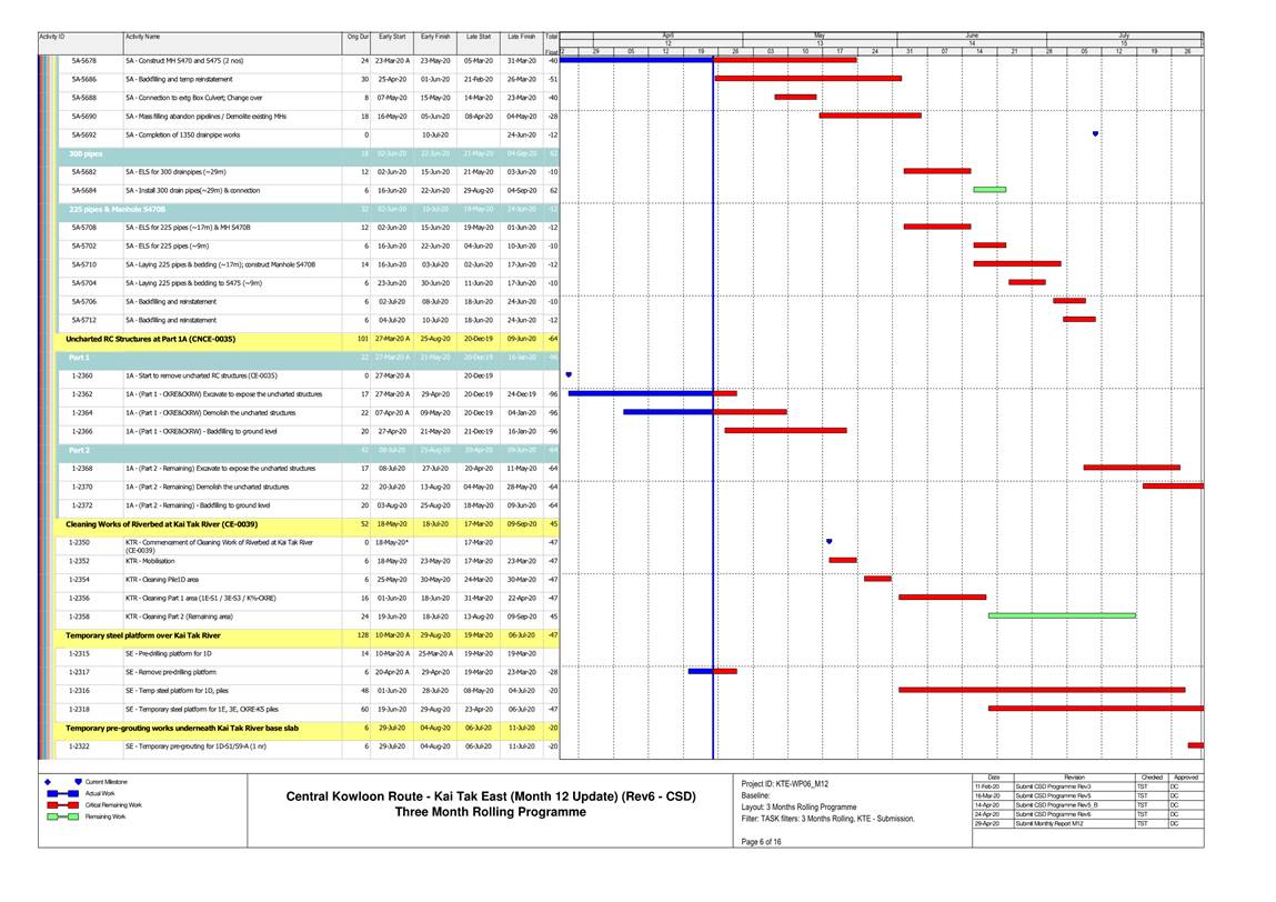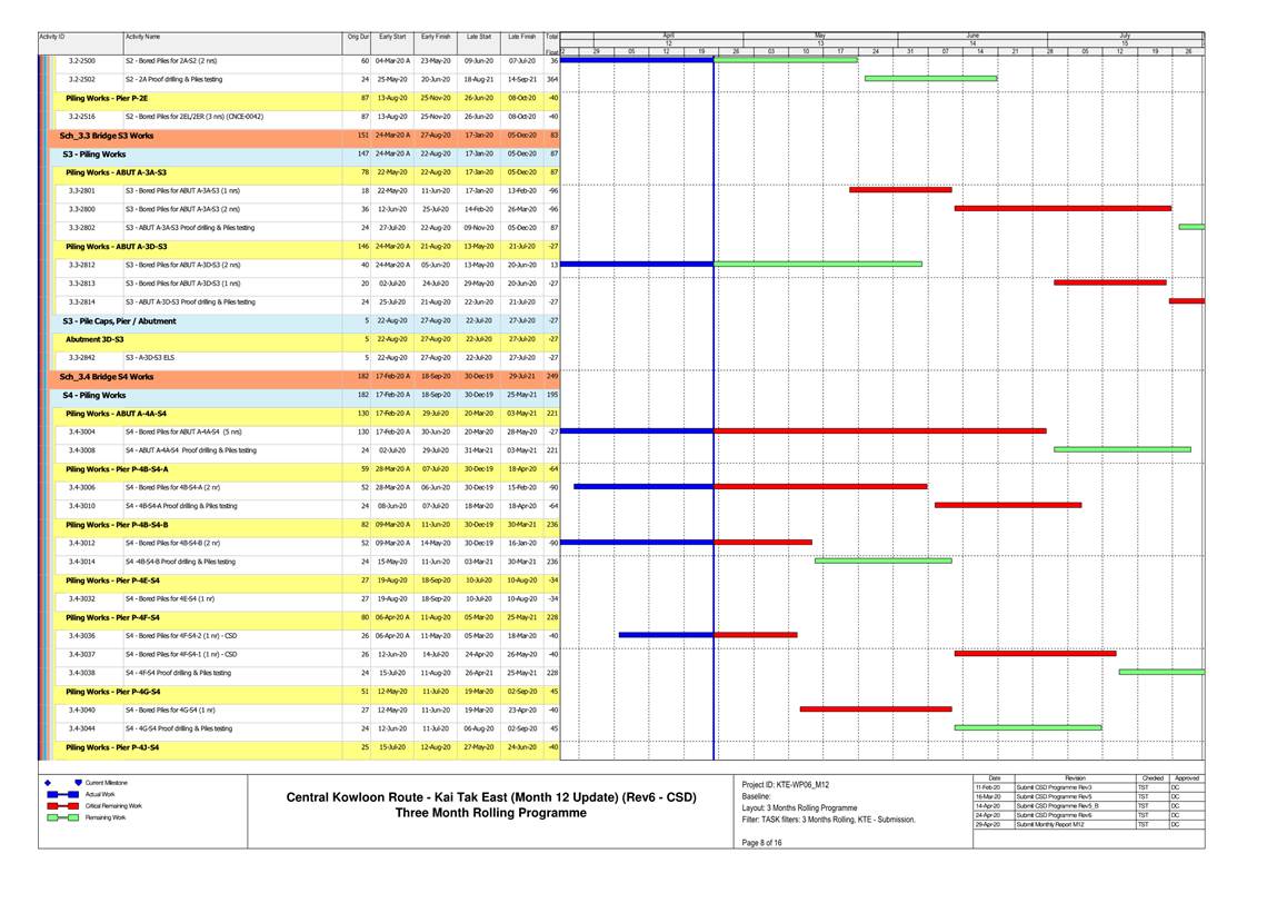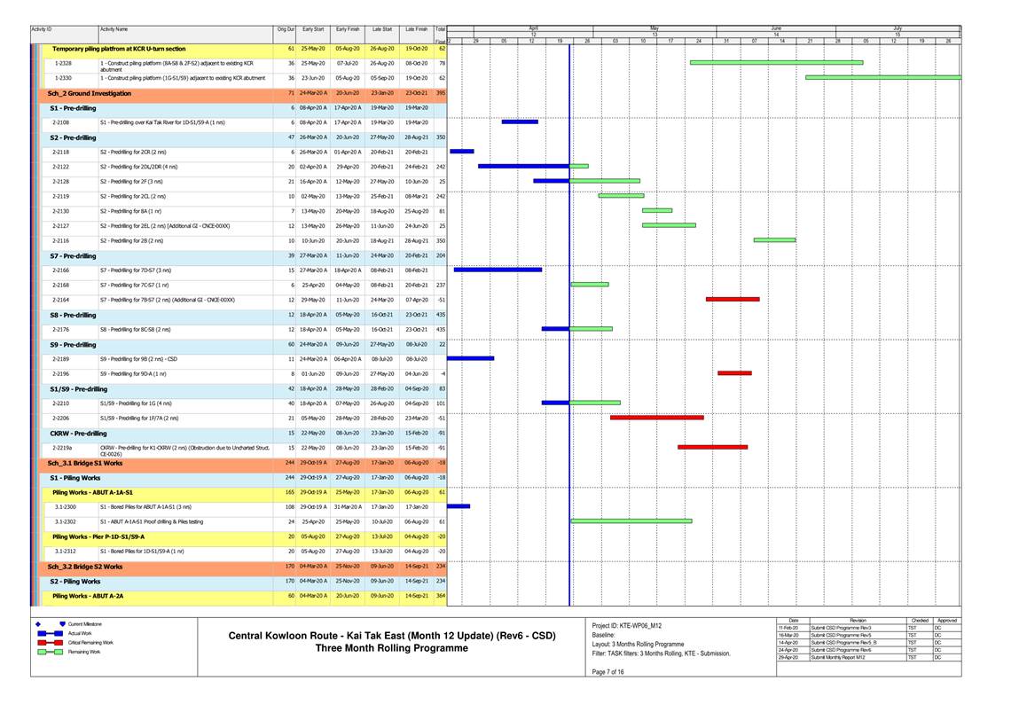 · Ground Investigation at Portion 1A & 2A & 3B & Kai Cheung U Turn & Kai Cheung Loop Road. · Bored Pile at Portion 1A & 3B. · Foundation Work for the Foot Bridge at Kai Fuk Road. · Sheetpiling Works for Adit at Area 1D3. · Sheetpiling Works for Underpass at Portion 3B. · Construction of Marine Platform at Kai Tak Nallah |