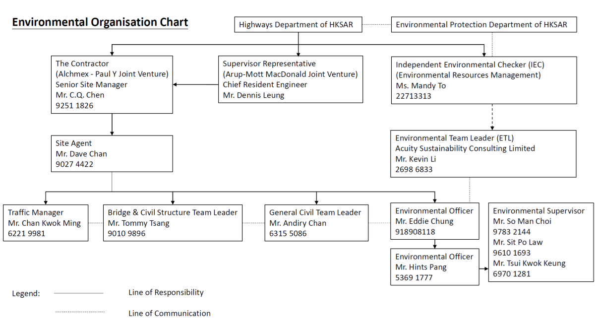 1.5. The project organisational chart specifying management structure and contact details are shown in Appendix C.
