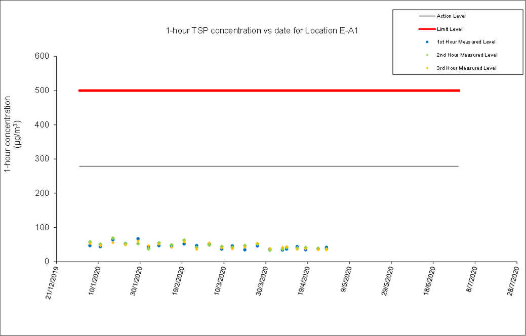 Figure 1: Graphical Illustration of Measured 1-hour TSP (μg/m3) Levels at E-A1