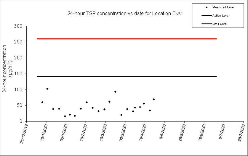 Figure 2: Graphical Illustration of Measured 24-hour TSP (μg/m3) Levels at E-A1