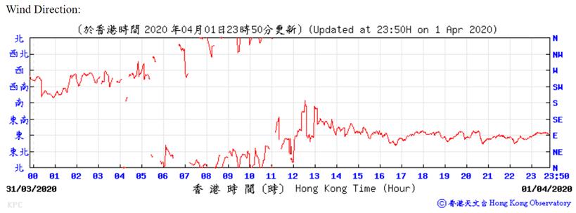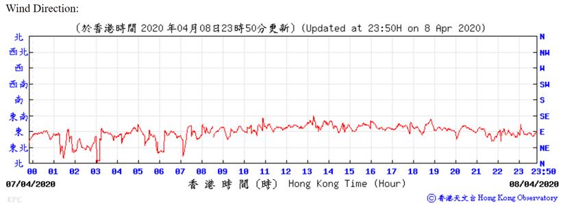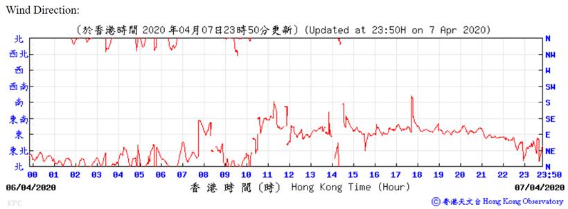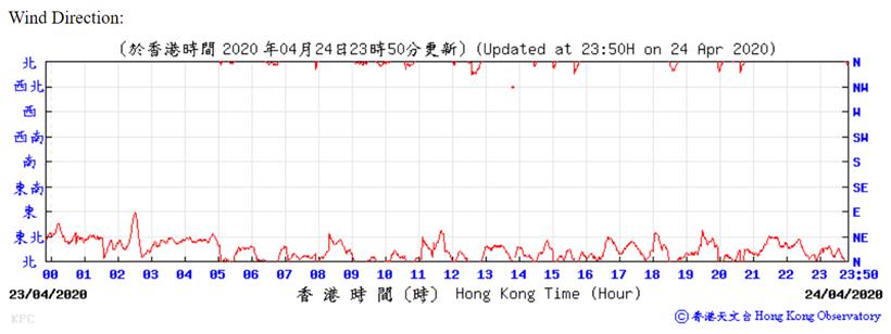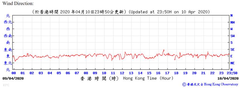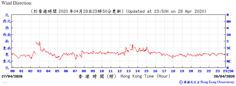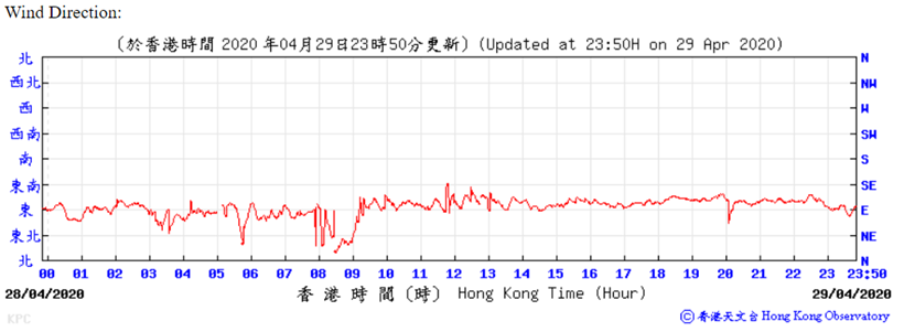 WIND DIRECTION DATA FOR 1, 2, 7, 8, 9, 10, 14, 15, 18, 19, 24, 25, 28, 29 April 2020