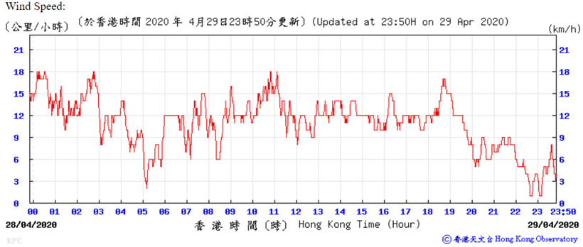 WIND SPEED DATA FOR 1, 2, 7, 8, 9, 10, 14, 15, 18, 19, 24, 25, 28, 29 April 2020