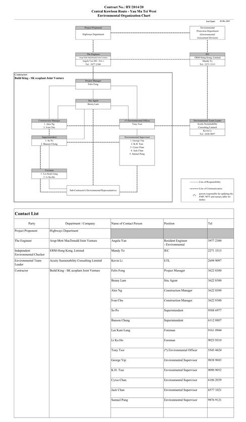 6.5 The Event and Action Plans for air quality and construction noise could be referred to Appendices D and E of the EM&A report in Contract No. HY/2014/20 respectively.
