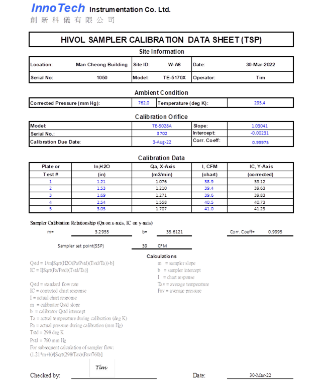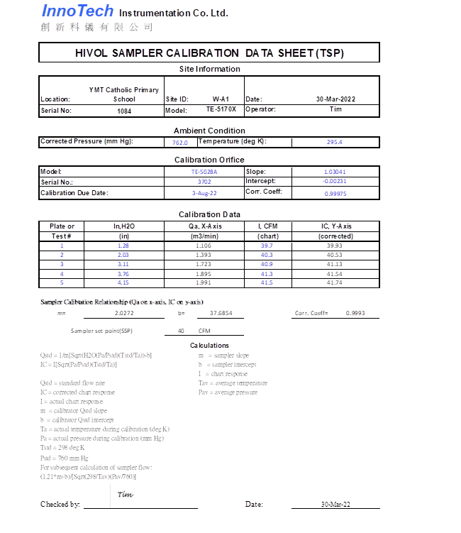 H. Calibration Certificate (Air Monitoring)