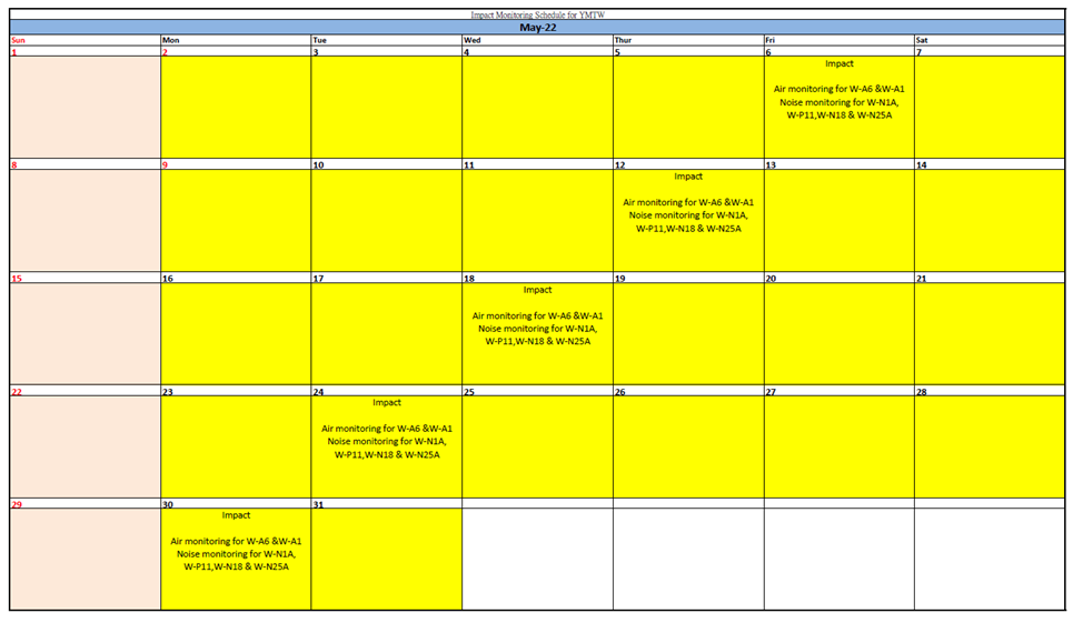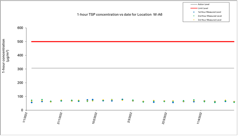 2.2 No Action/Limit Level exceedance was recorded for all 1-hour TSP and 24-hour TSP monitoring in the reporting month.