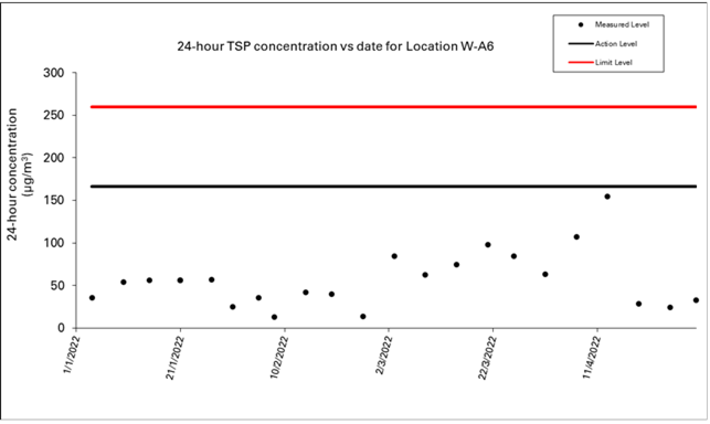 8.2 No Action/Limit Level exceedance was recorded for all 1-hour and 24-hour TSP monitoring in the reporting month.