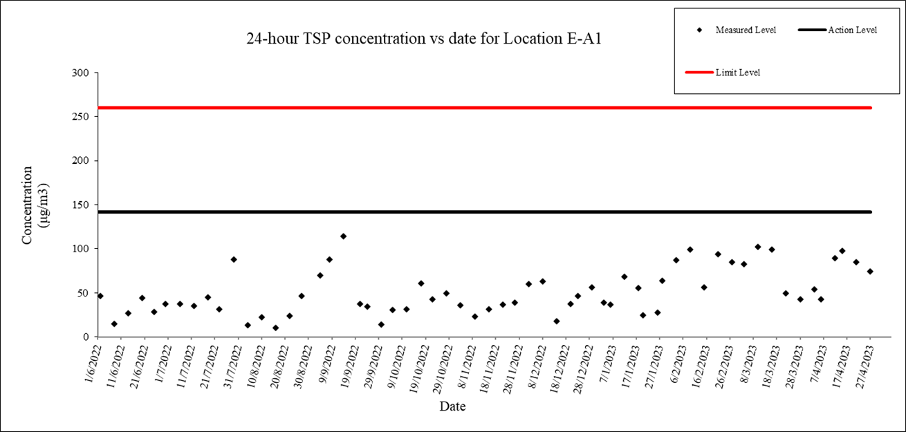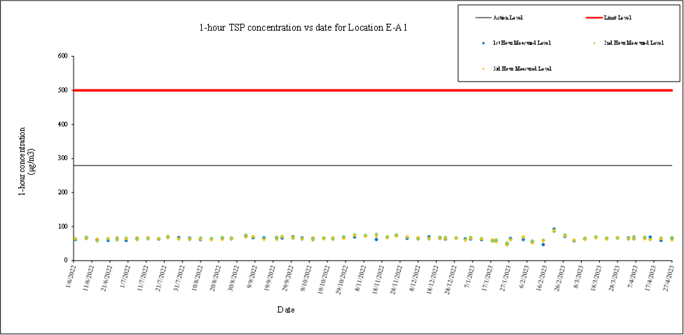 A.7 No exceedance of the Action and Limit Levels of 24-hour TSP and 1-hour TSP monitoring were recorded during the reporting month.