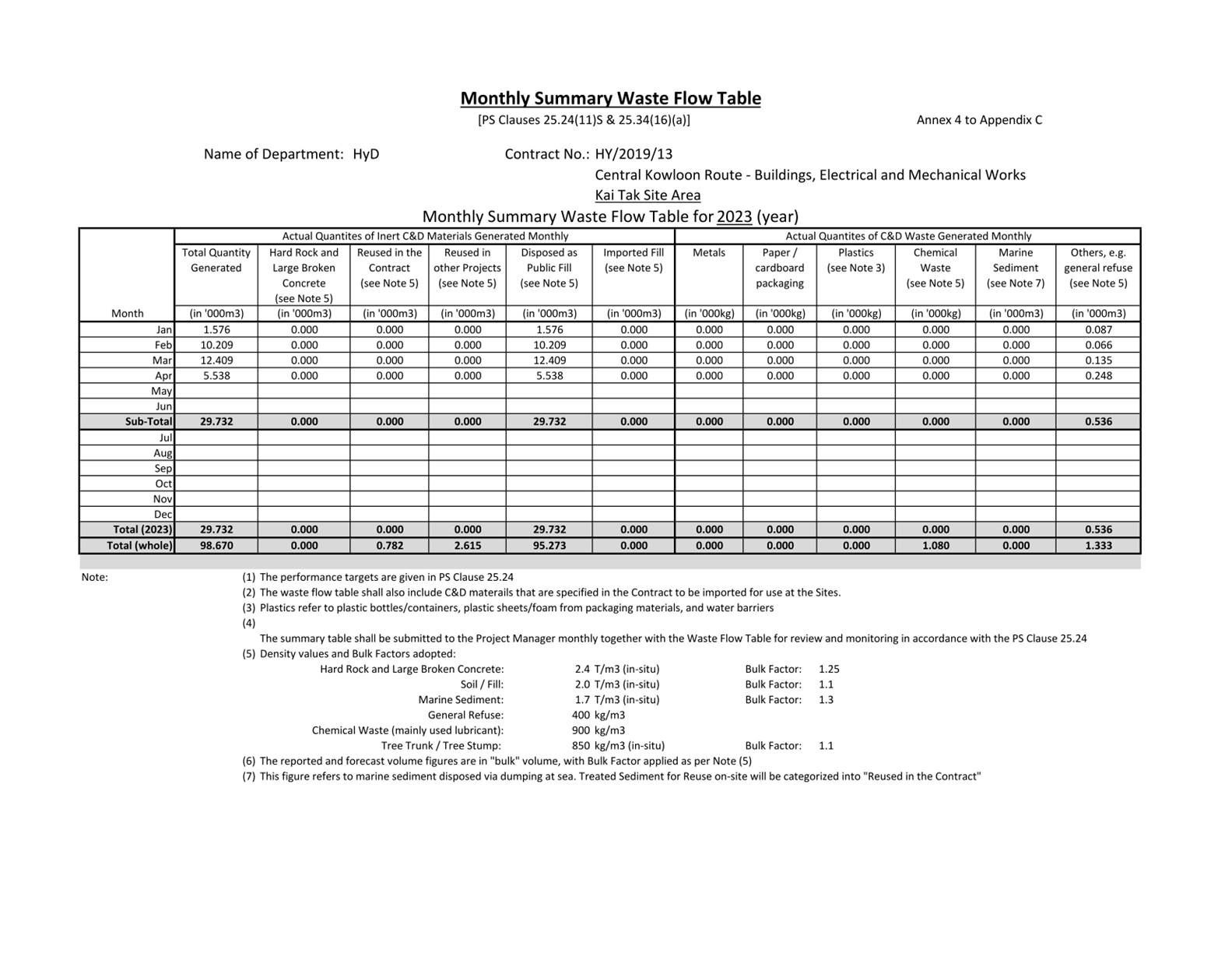 A.1 Alchmex – Paul Y Joint Venture (“Contractor”) commenced the construction works of Highway Department (HyD) Central Kowloon Route Contract No. HY/2018/02 – Section of Kai Tak East (“The Project”) on 9 September 2019. This report is the 44th monthly Environmental Monitoring and Audit (EM&A) report presenting the EM&A works carried out during the period from 1 April 2023 to 30 April 2023.