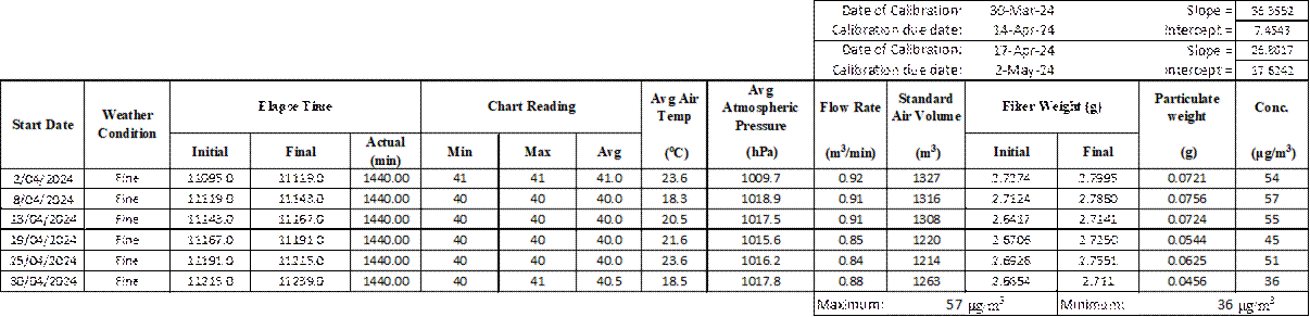 Construction dust (24-hour TSP) monitoring