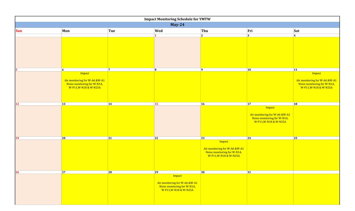 A.3 A summary of regular construction noise and construction dust monitoring activities in this reporting period is listed below: