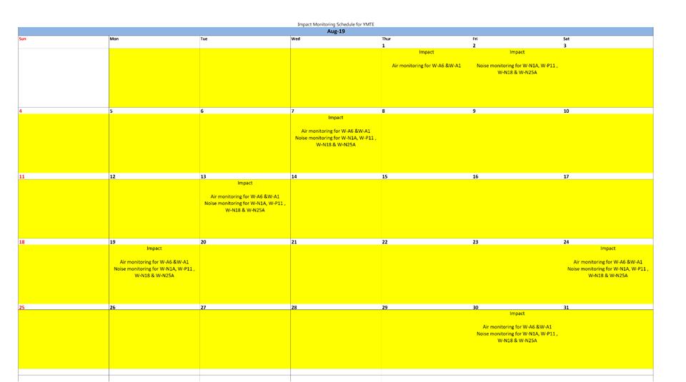 A.7 Joint weekly site inspections were conducted by representatives of the Contractor, Engineer and Contractor’s ET on 1, 8, 15, 22, 29 August 2019. Details of the audit findings and implementation status are presented in Section 5.