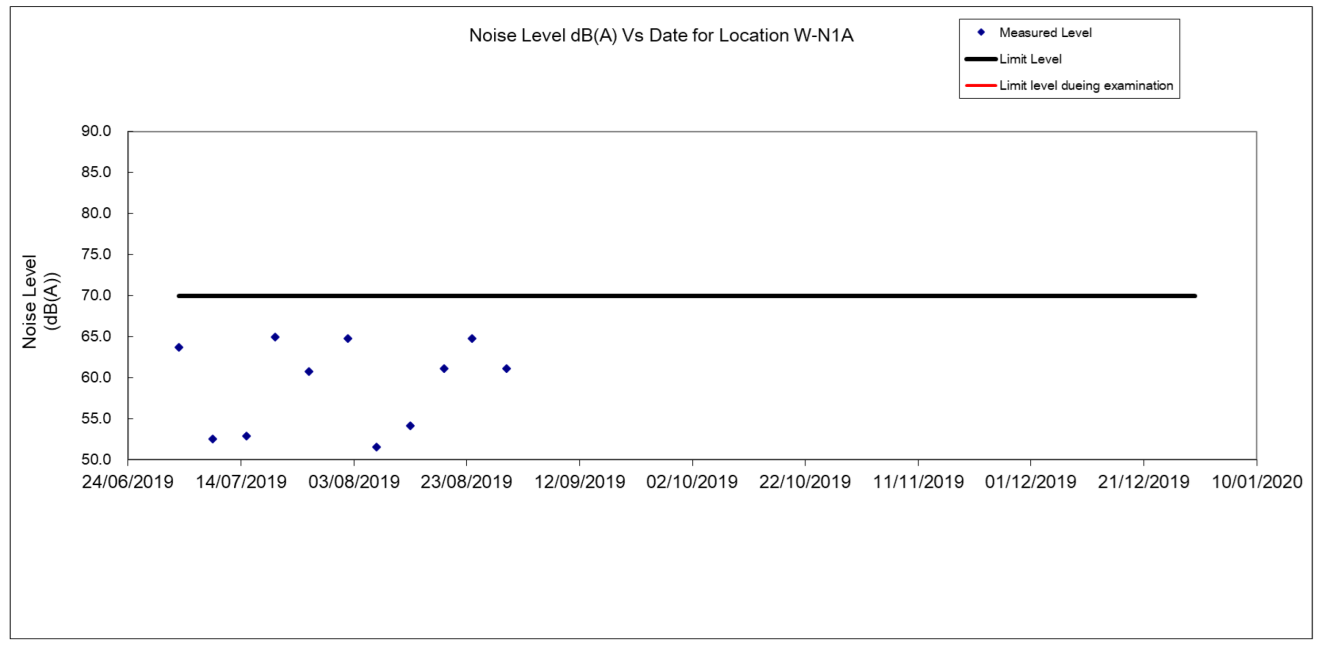 A.9 One Action Level of construction noise was triggered during the reporting period as there was one documented complaint received on 29 August 2019 related to construction noise in Zone C. Immediate action had been taken. No further Action Level was triggered. No exceedance of the Limit Level of regular construction noise monitoring was recorded during the reporting period.