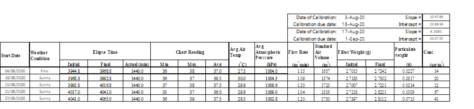 A.6 Scheduled monitoring for 1-hour TSP remained unaffected, only the schedule of 24-hour TSP was changed.