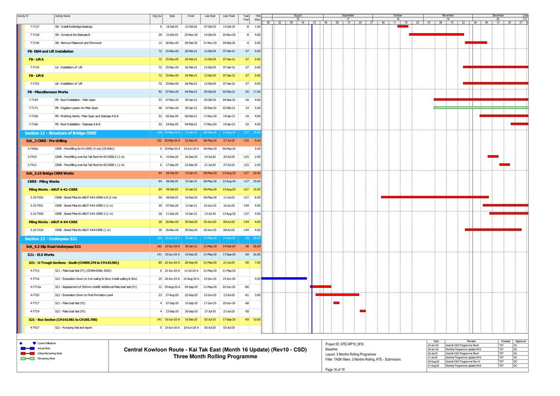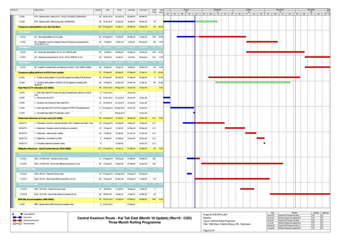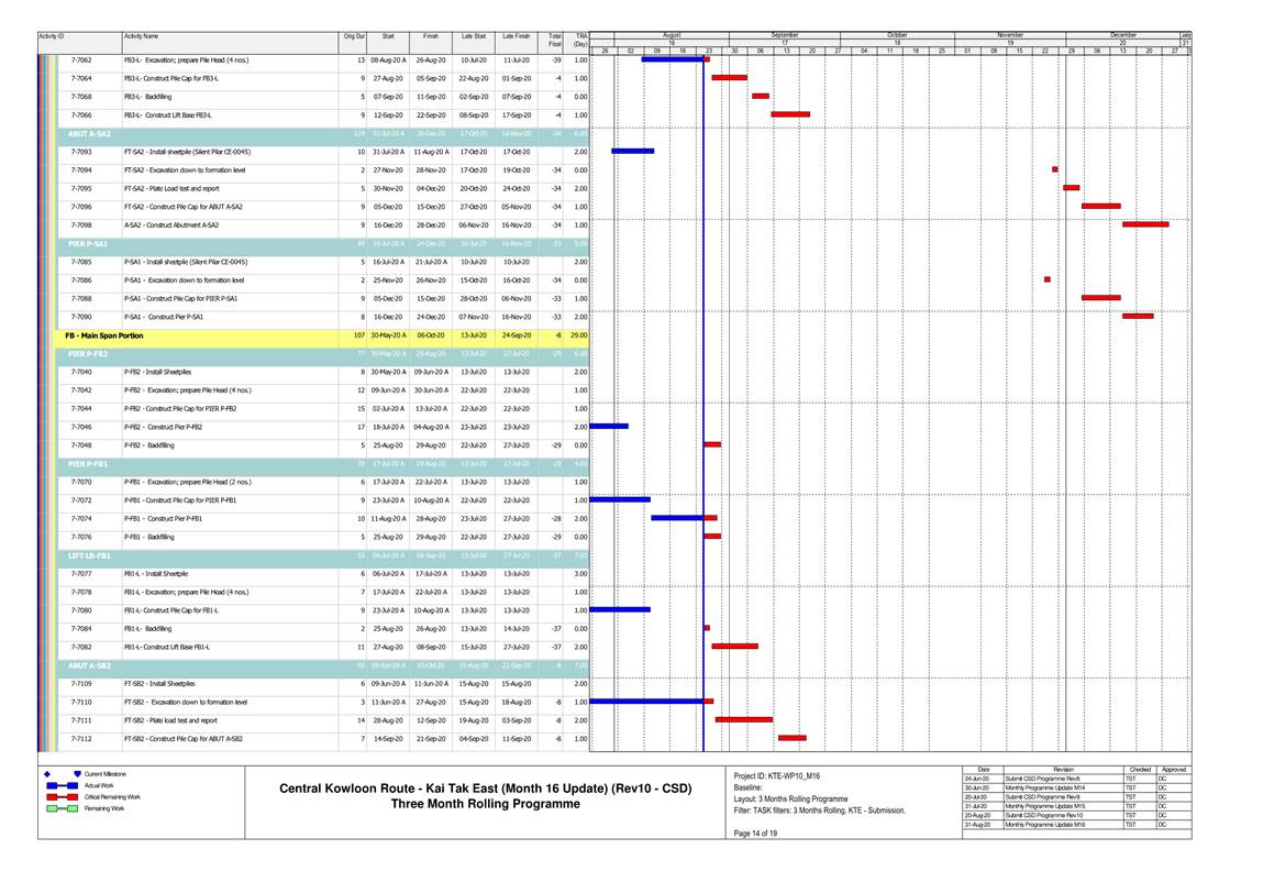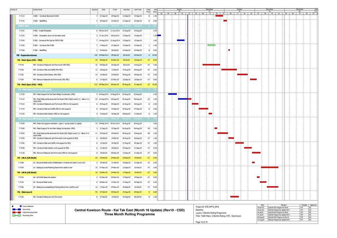 1.4. A summary of major construction activities provided by the Contractor in this reporting period is shown in Table 1.1. The construction programme is presented in Appendix B.