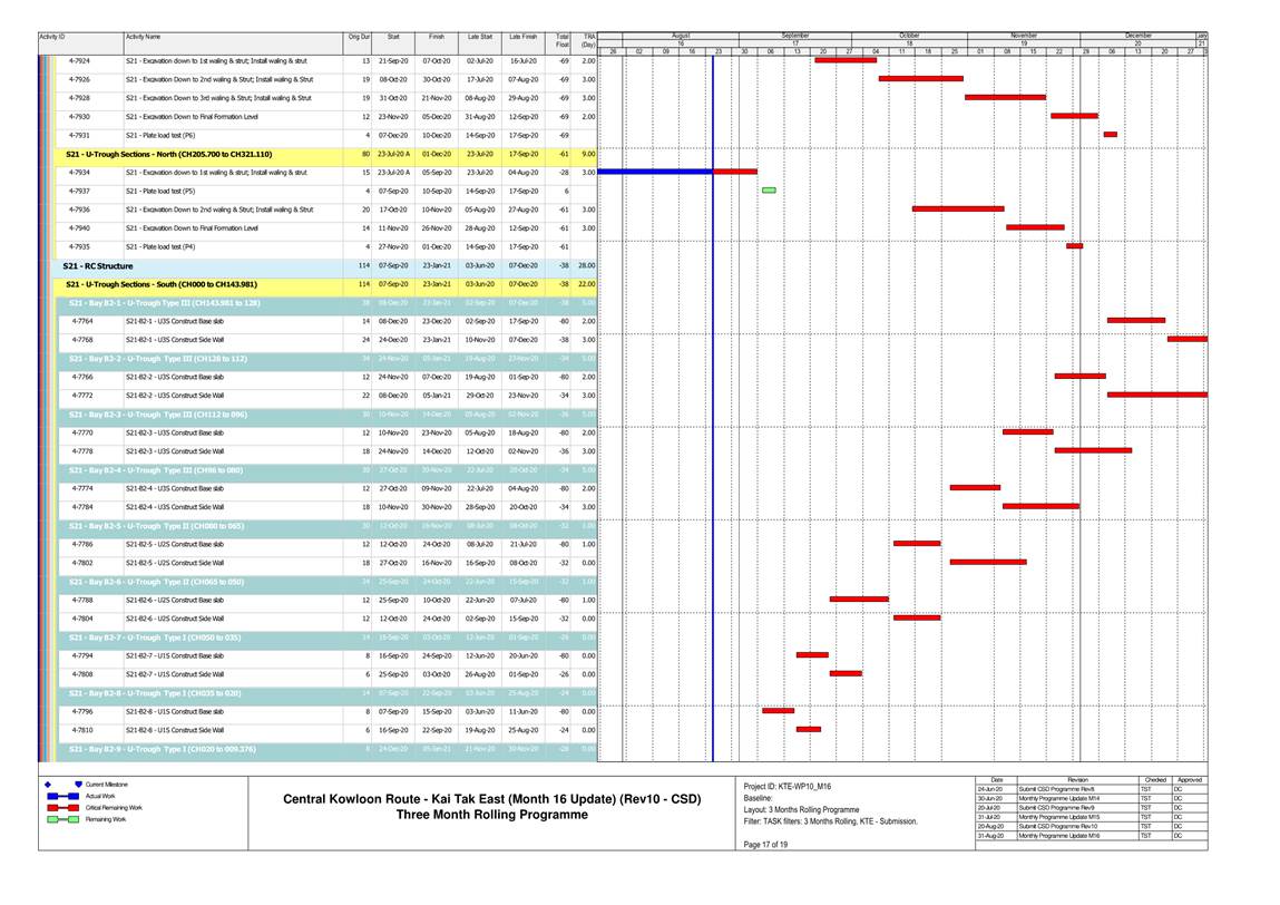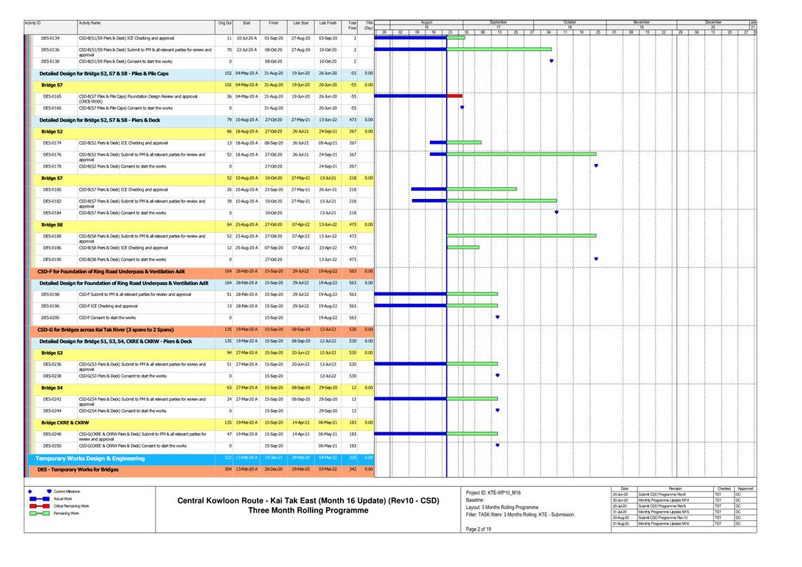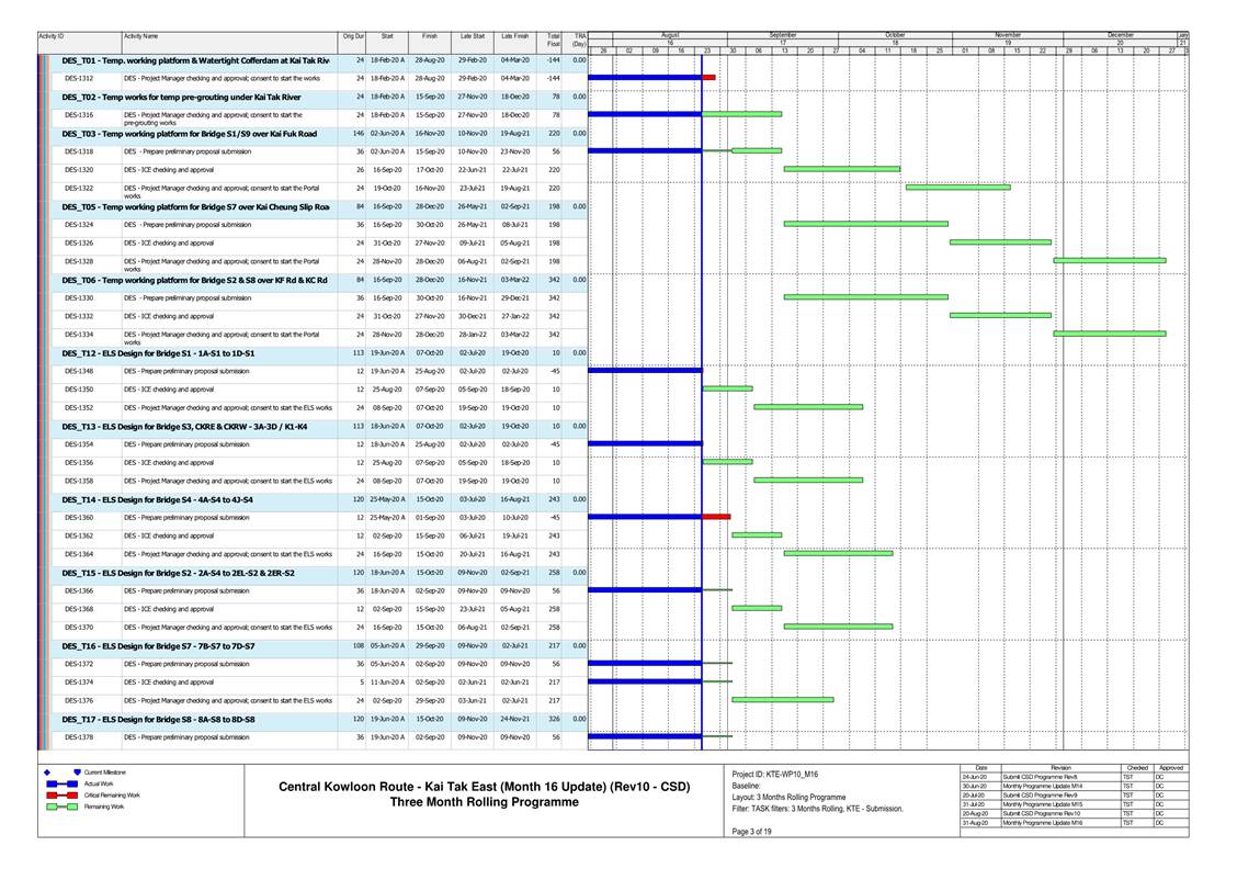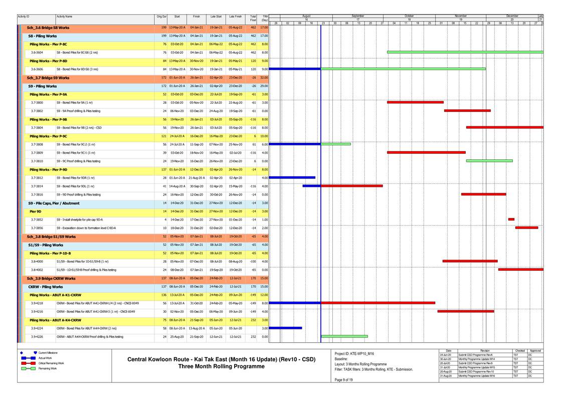 1.4. A summary of major construction activities provided by the Contractor in this reporting period is shown in Table 1.1. The construction programme is presented in Appendix B.