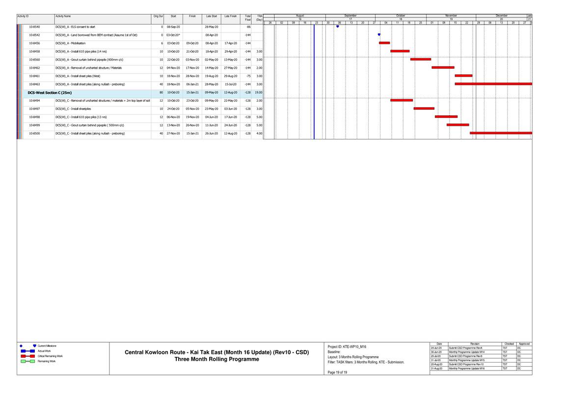 A.10 A summary of Construction Activities provided by Contractor in next reporting month is listed below:
