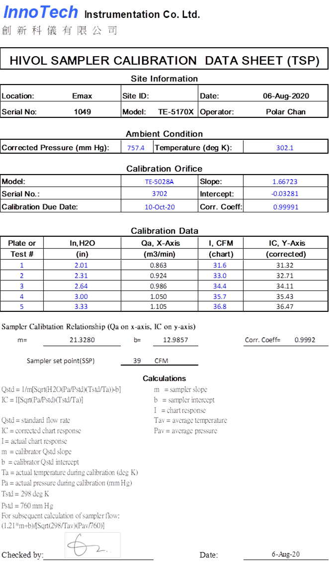 H. Calibration Certificate (Air Monitoring)