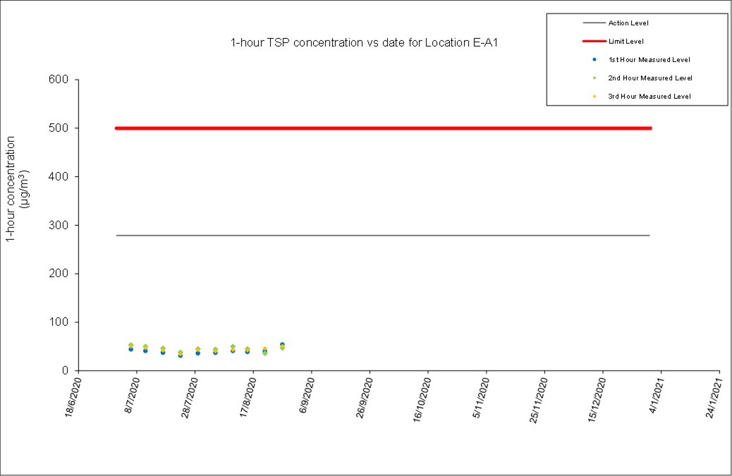 A.7 No exceedance of the Action and Limit Levels of 24-hour TSP and 1-hour TSP monitoring were recorded during the reporting month.