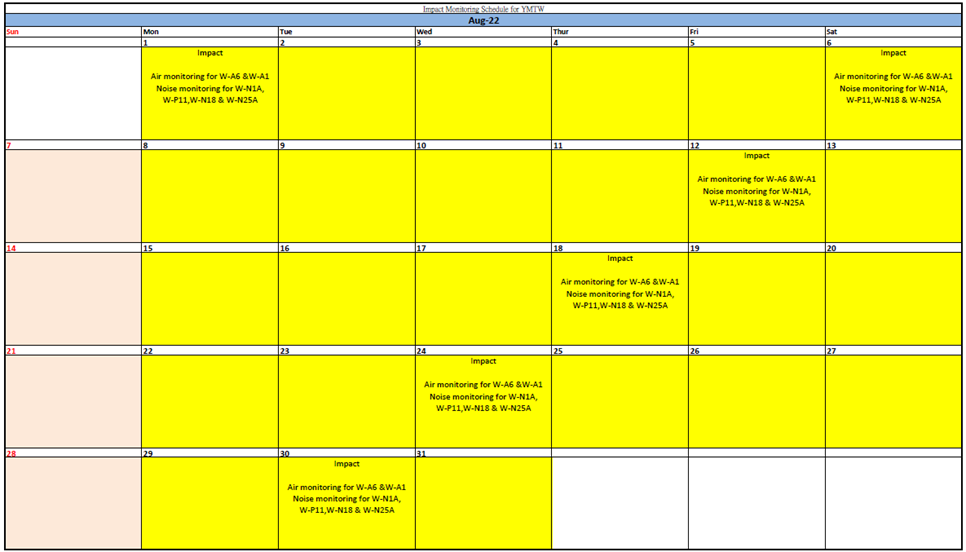 8.1 This is the 23rd Monthly EM&A Report which presents the EM&A works undertaken in Yau Ma Tei West Area during the reporting month from 1st August 2022 – 31st August 2022 in accordance with the EM&A Manual and the requirements under the EP.