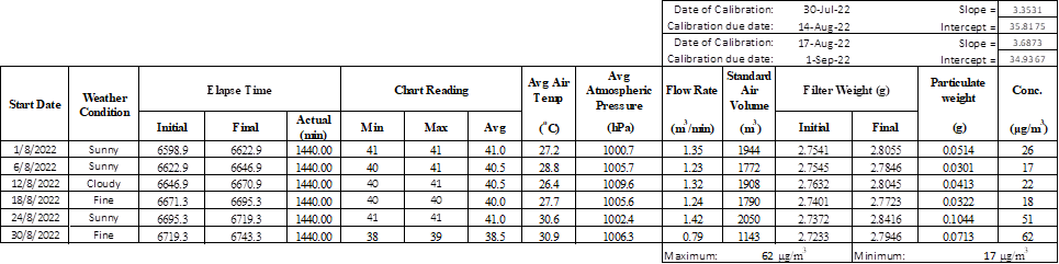 8.2 No Action/Limit Level exceedance was recorded for all 1-hour and 24-hour TSP monitoring in the reporting month.