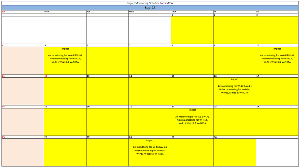 2.3 Site audits were carried out on a weekly basis to monitor and audit the timely implementation of air quality mitigation measures within the site boundaries of this Project. The summary of site audits is shown in Table 6.1 of this report.