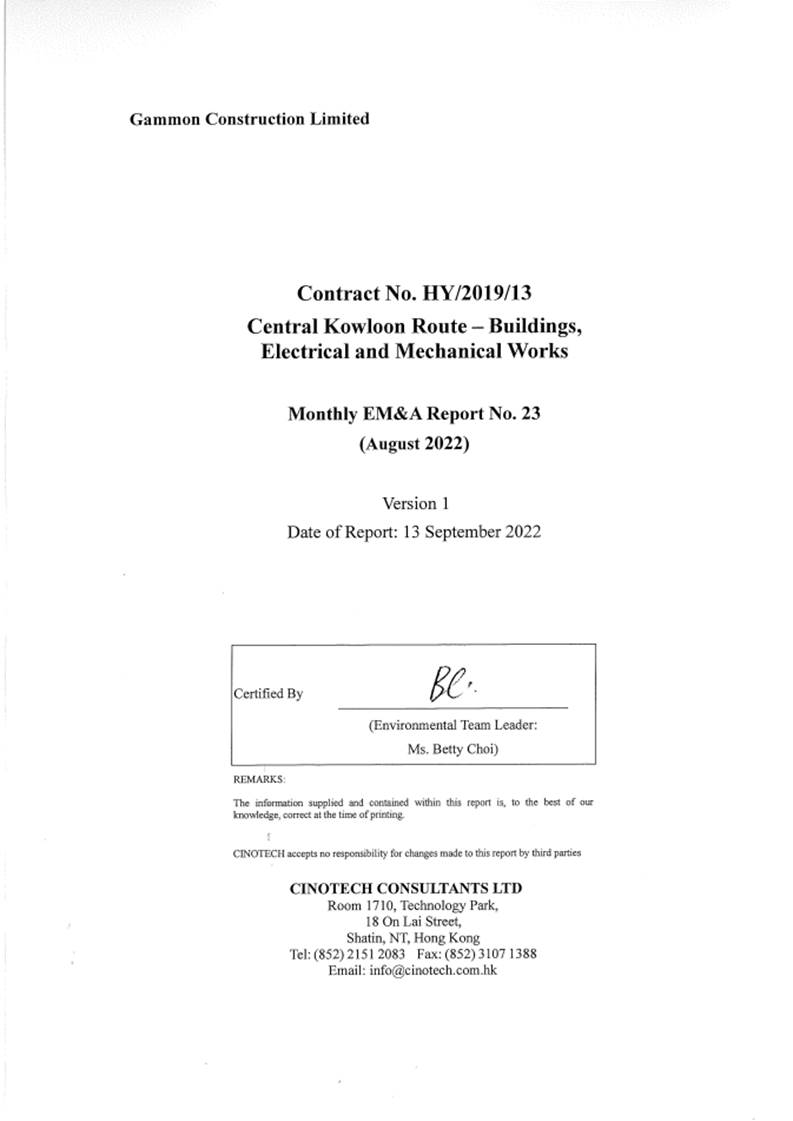 A.1 Build King – SK ecoplant Joint Venture (“Contractor”) commenced the construction works of Highway Department (HyD) Central Kowloon Route Contract No. HY/2014/20 – Section of Yau Ma Tei West (“The Project”) on 12 February 2019. This is the 43rd monthly Environmental Monitoring and Audit (EM&A) report presenting the EM&A works carried out during the period from 1 August 2022 to 31 August 2022.