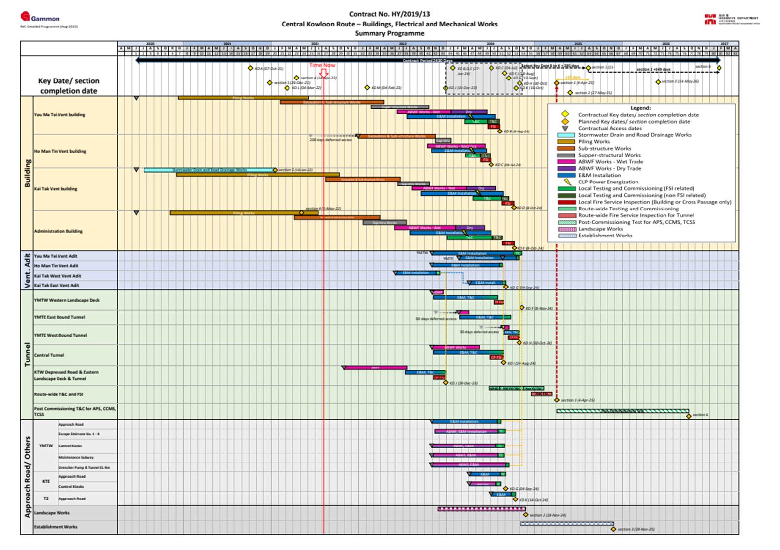 · Socket H-Pile at Segment 1, 2, 5, 8 and 9 incl. Bridge B2 and C2 at Portion 1B and 1D · Reinforced Concrete Works for Vent. Adit Ch 90~130 (Zone 3) at Portion 1E · Construction of Noise Barrier S01 (along Lin Cheung Road) at Portion 1E · Roadworks and Installation of Noise Barrier C03 (along Lin Cheung Road) at Portion 1E · Bridge Deck Construction at Bridge C2 Deck 3 / B2 Deck 2 / C Deck 2 / B Deck 1 at Portion 1E · Abutment B-C construction at Portion 1E · Abutment Wall A and B Construction at Road D at Portion 1E · Excavation and Lateral Support Works at Vent. Adit Ch 175~240 at Zone 4B, 4C and A1 at Portion 1E · Parapet wall construction at Bridge G at Portion 1B · Abutment Wall Construction at Slip Road E at Portion 1B · Drainage Installation at Slip Road F at Portion 1B · Excavation and Lateral Support Works at Escape Route Staircase No. 1 to 2 at Portion 1F and 10 · Road Slab construction at Segment 10 and 11 at Portion 1F · RC Works for Vent. Adit Ch 280~290 / Segment 11 to 12 Ch 360~465 at Portion 1F · Elevated Hoi Wang Road including Pre-stressing and grouting at Portion 1D · Landscaped Construction at Segment 7 at Portion 1D · Pile Cap, Wall and Column Construction along Hoi Wang Road (Segment 5, 6, 7 and 8) at Portion 1D |