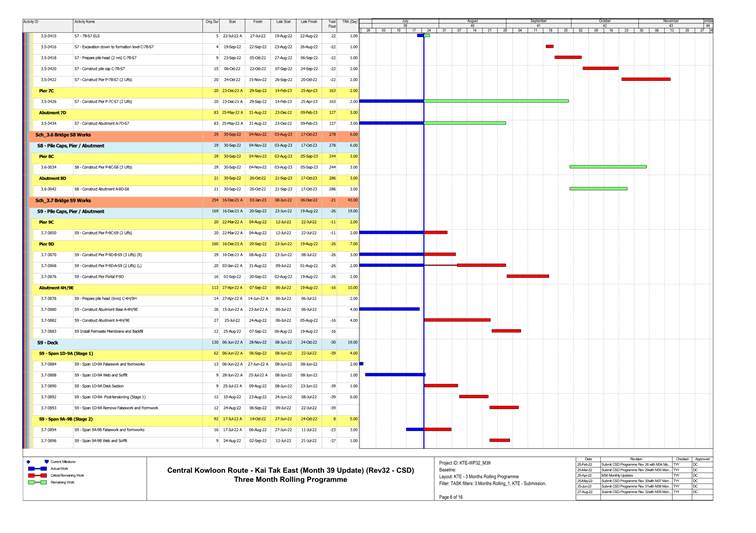 1.5. A summary of major construction activities provided by the Contractor in this reporting period is shown in Table 1.1. The construction programme is presented in Appendix B.