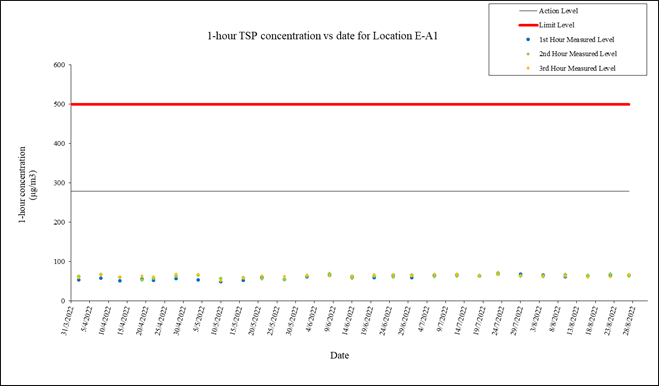 Figure 1: Graphical Illustration of Measured 1-hour TSP (μg/m3) Levels at E-A1