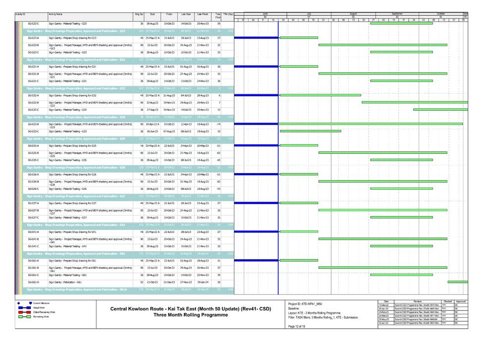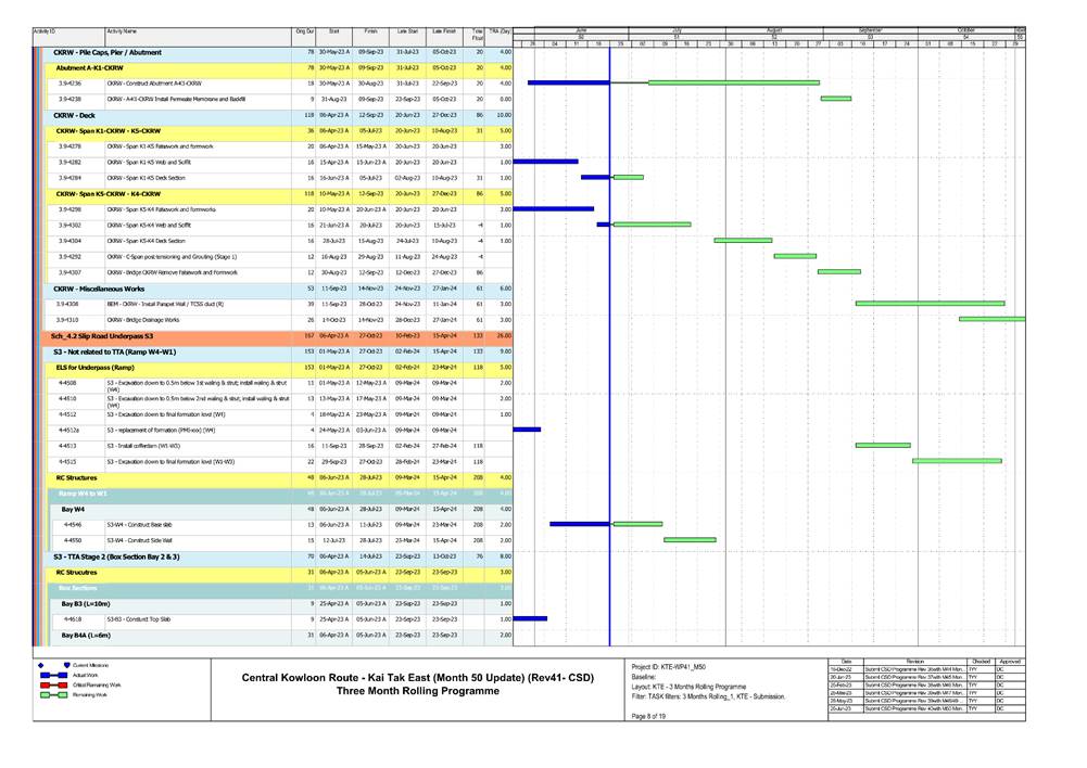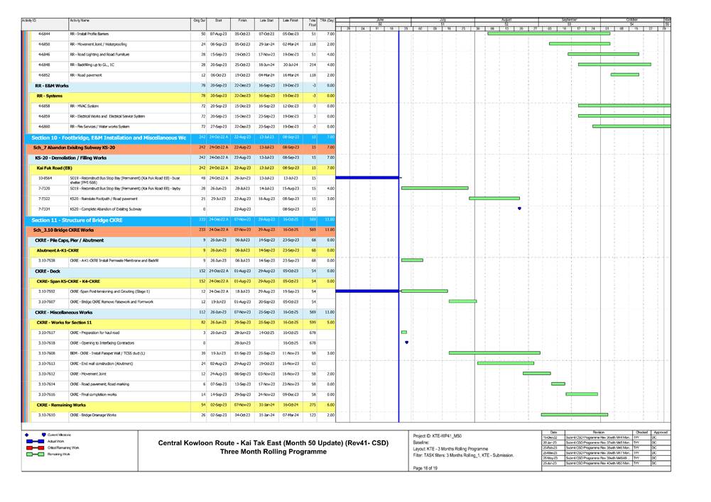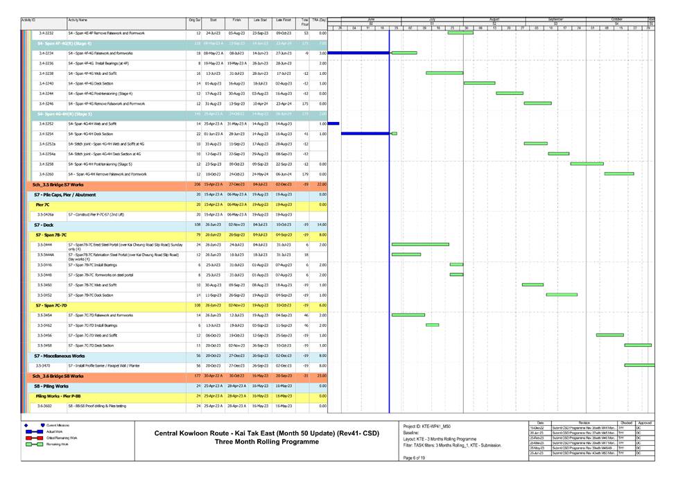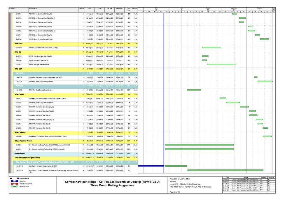 1.5. A summary of major construction activities provided by the Contractor in this reporting period is shown in Table 1.1. The construction programme is presented in Appendix B.