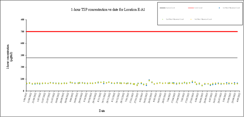 A.7 No exceedance of the Action and Limit Levels of 24-hour TSP and 1-hour TSP monitoring were recorded during the reporting month.