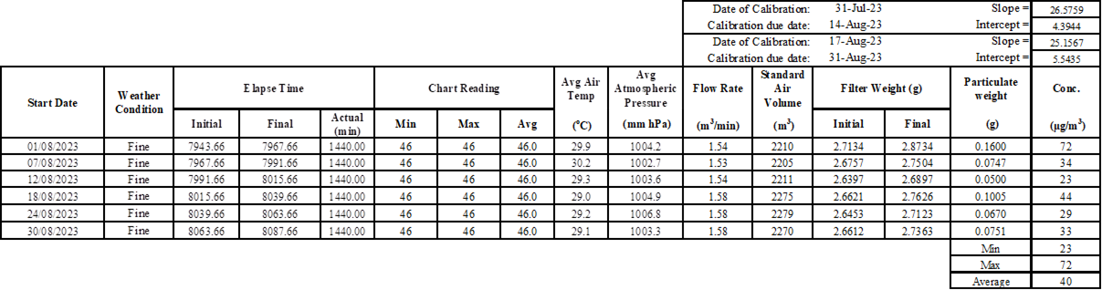 A.3 A summary of regular construction dust monitoring activities in this reporting period is listed below: