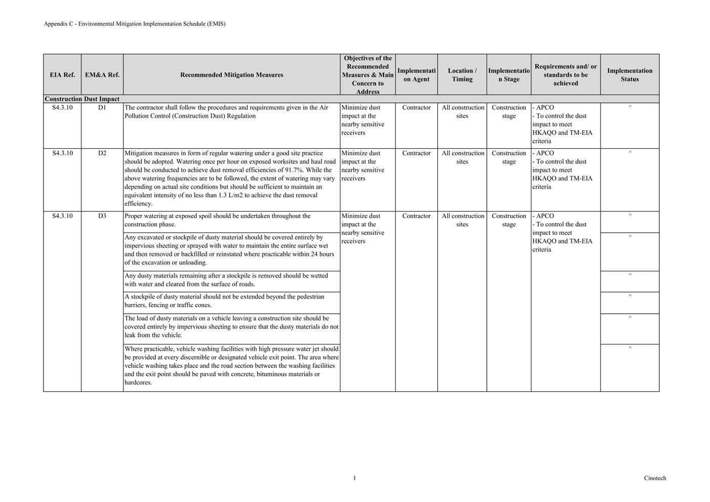 F. Environmental Mitigation Implementation Schedule (EMIS)