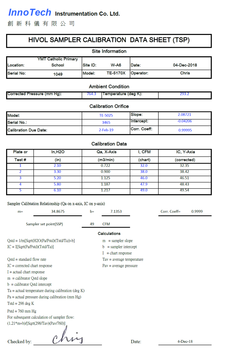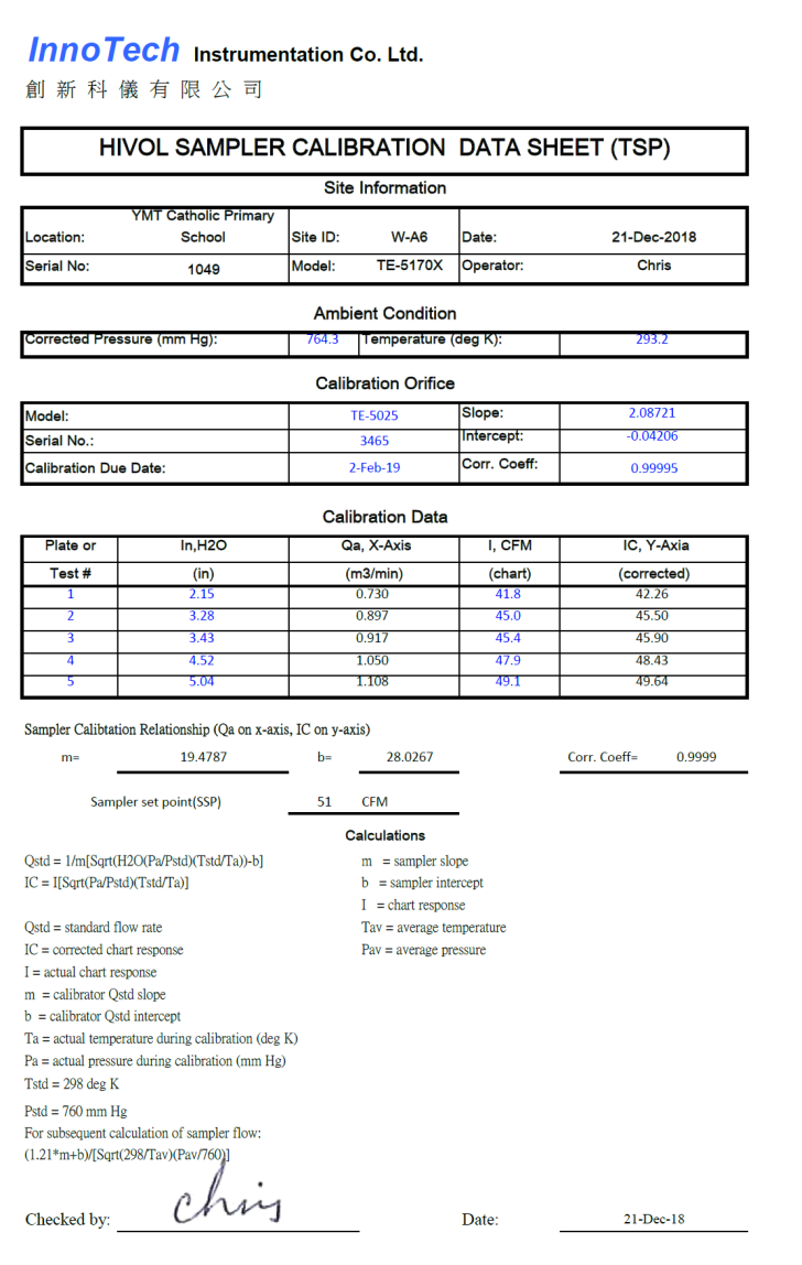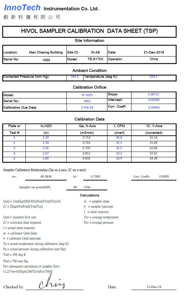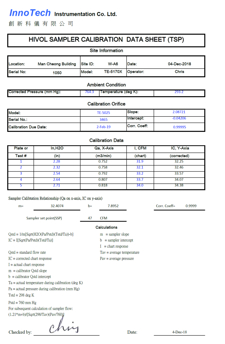H. Calibration Certificate (Air Monitoring)