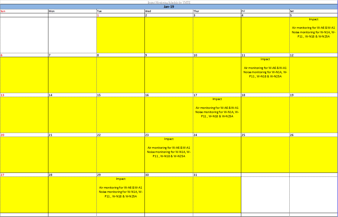 A.10 No exceedance of the Action and Limit Levels of 24-hour TSP and 1-hour TSP monitoring were recorded during the reporting period.