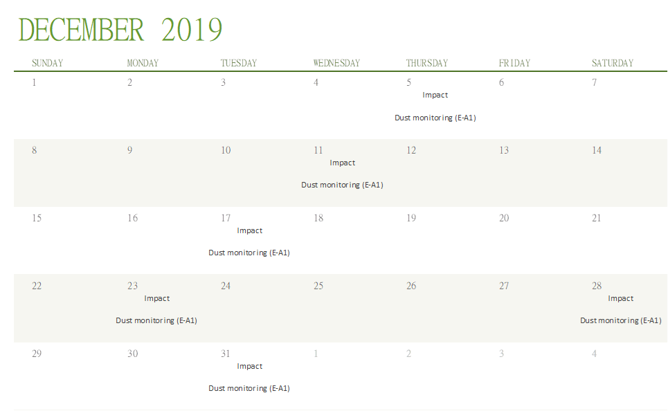 Monitoring Schedule of the Coming Month
