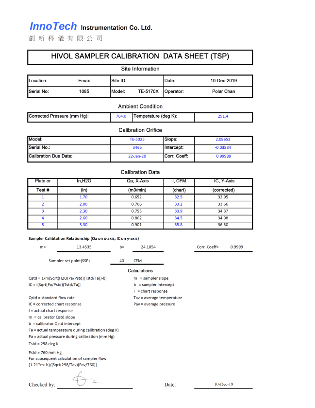 G. Calibration Certificate (Air Monitoring)