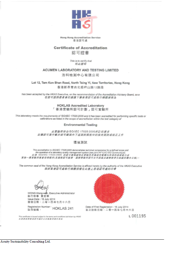H. The Certification of Laboratory with HOKLAS Accredited Analytical Tests