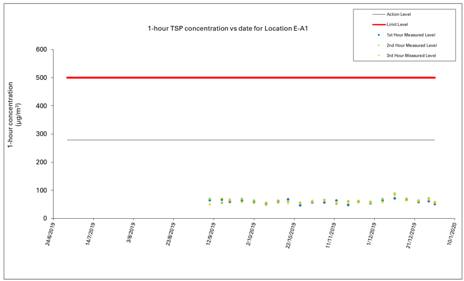 Figure 1: Graphical Illustration of Measured 1-hour TSP (μg/m3) Levels at E-A1